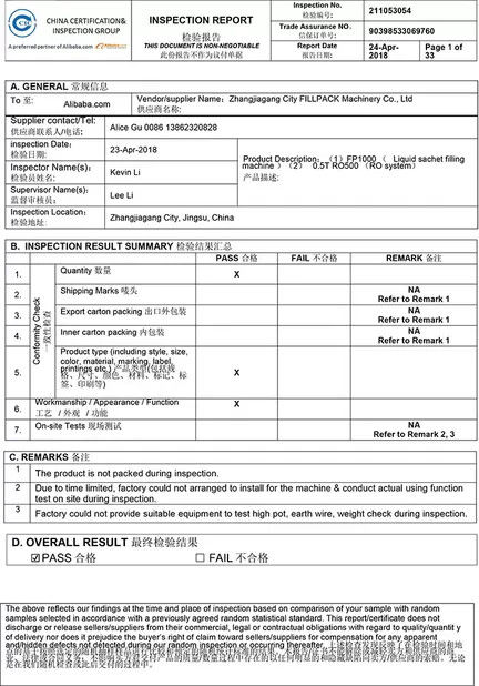 ماشین آلات FillPack با توجه به اهمیت کیفیت محصول ، دارای یک سیستم کنترل کیفیت عالی است تا اطمینان حاصل شود که محصولات ما می توانند نیازهای سخت افزاری مختلف مشتریان را برآورده کنند.