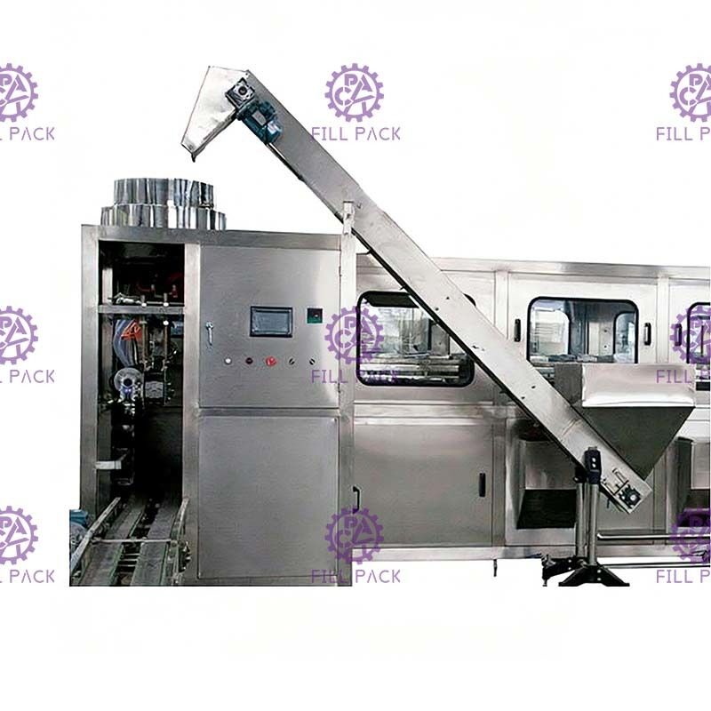 هنگامی که بطری گالن وارد دستگاه میشود، صفحه بلوک بطری را محکم توسط سیلندر مسدود میکند، سر درپوشبردار پایین میآید و دستگاه چنگکی کنارههای درپوش بشکه را محکم نگه میدارد، و سپس بشکه را بلند میکند تا درپوشها را بردارد. و هنگامی که درپوشها برداشته شدند، هوای کمپرسور درپوشها را به داخل قیف درپوش میدمد، سپس به بیرون و به داخل نگهدارنده مشتری میافتد.