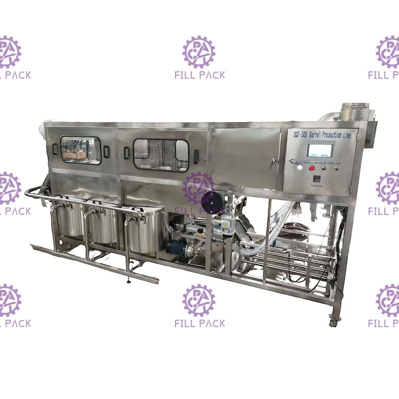 خط تولید آب بشکهای نوع QGF تجهیزات اصلی در خط تولید آب آشامیدنی 5 گالنی بشکهای است. این دستگاه تجهیزات ایدهآلی برای فرآیند تولید آب معدنی، آب مقطر و آب تصفیه شده است. این دستگاه از فولاد ضد زنگ عالی ساخته شده است که مزیت شستشوی آسان و مقاومت در برابر خوردگی را دارد. قطعات الکتریکی اصلی محصولات با برند SIEMENS و OMRON را اتخاذ میکنند. قطعات پنوماتیک محصولات با برند AIRTAC را اتخاذ میکنند. هر دو نازل دوش داخلی و خارجی برای شستشوی بشکه، تجهیزات فناوری ویژه را از شرکت اسپریکننده آمریکایی اتخاذ میکنند. این دستگاه بر اساس ساختار فشرده و فناوری خودکار بالا، به طور قابل اعتماد و کارآمد کار میکند. این تجهیزات تولید آب بشکهای کاملاً اتوماتیک است که با اجزای مکانیکی، الکترونیکی و پنوماتیکی ترکیب شده است.